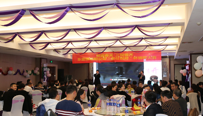 為助力營銷,實現名仕悅府首開大賣,樂富強地產阜陽公司于3月20日晚6:00在白金漢宮大酒店三樓會議室舉辦了一場以“邂逅春天,三悅情開”為主題的“名仕悅府杯”情歌大賽活動。公司領導以及名仕悅府、玖悅府、悅瀾灣各項目部人員齊聚一堂,共同度過這美好的夜晚。