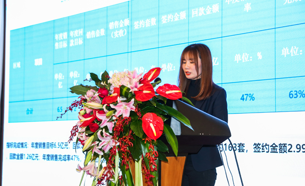 其次,各項目營銷部負責人分別從年度銷售額、營銷費用、市場表現等對各區域樓盤整體情況進行了詳細的總結與分享,從市場行情、銷售動態、簽約回款工作分析不足并查找原因,同時對明年的銷售重點進行了點亮激活。