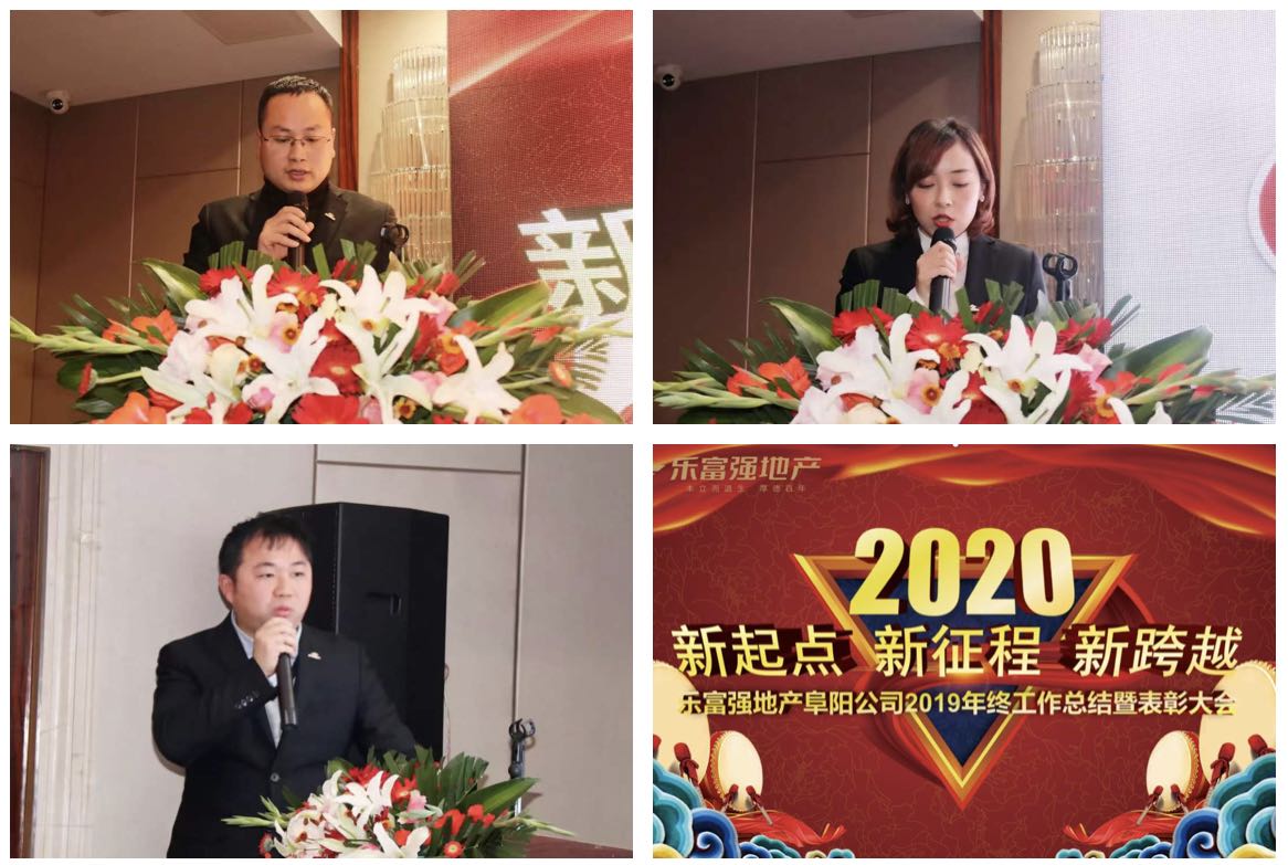 凱歌高奏辭舊歲,春風得意迎新年。2020年1月7日,樂富強地產阜陽公司“新起點、新征程、新跨越”2019年終工作總結表彰大會暨2020迎新年會在阜陽白金漢宮大酒店舉行。領導班子成員、公司全體員工以及來自白金漢宮大酒店、阜陽物業公司等兄弟公司特邀嘉賓齊聚一堂,全面回顧總結2019年工作情況,共話奮斗歷程,共享成功喜悅,共繪發展藍圖。