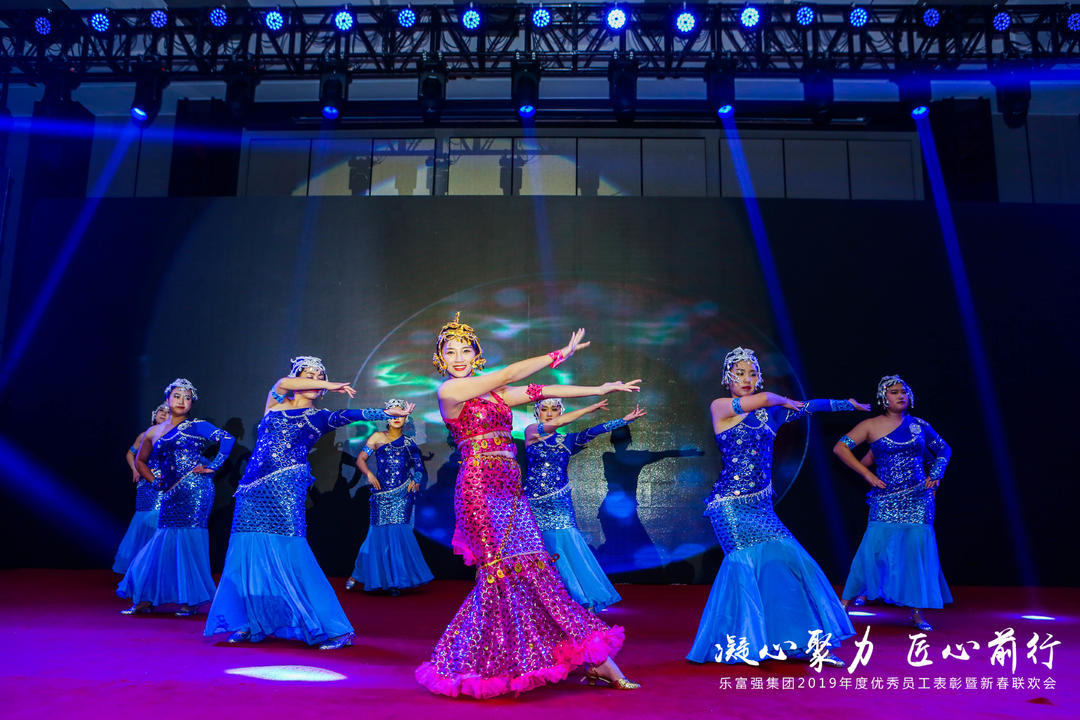 隨后,樂富強(qiáng)集團(tuán)領(lǐng)導(dǎo)班子成員共同登臺向在場全員致祝酒詞,為樂富強(qiáng)集團(tuán)美好明天共同干杯。精彩的新春聯(lián)歡會正式拉開帷幕。