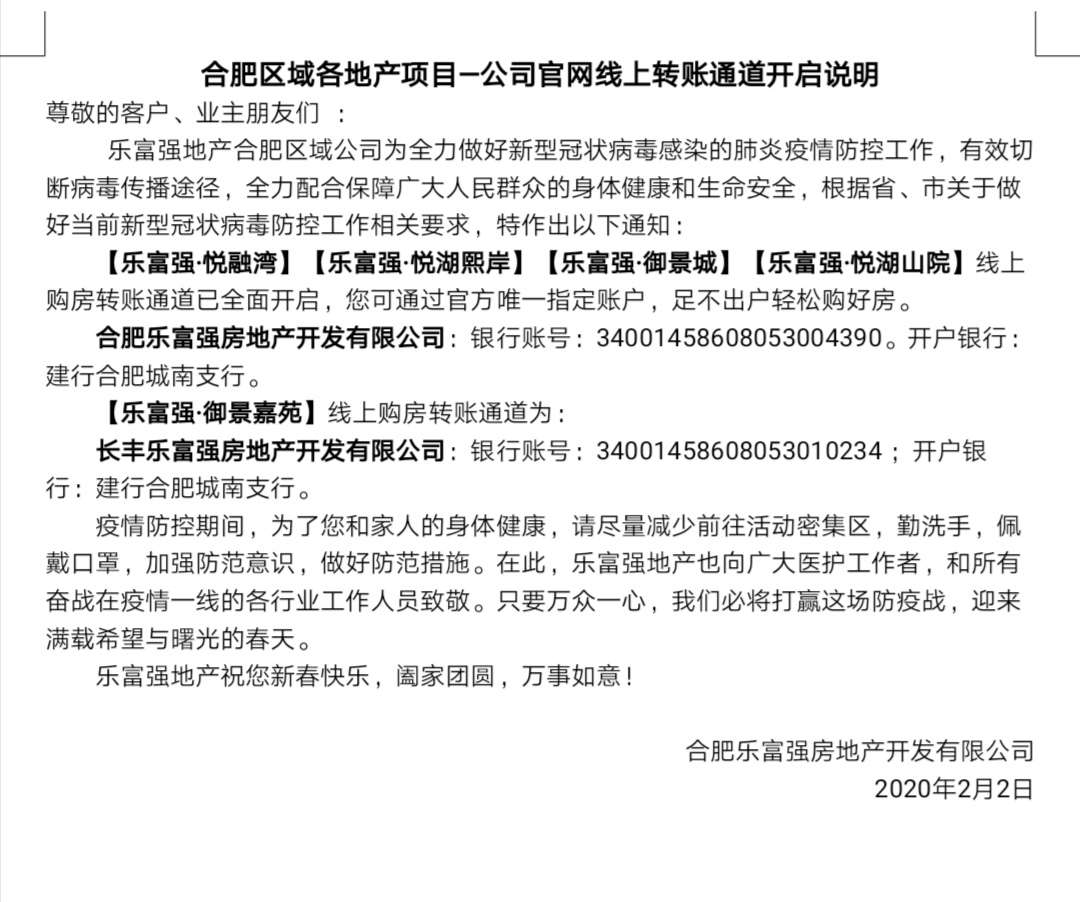 關于集團各區域地產項目開啟線上轉帳通道說明