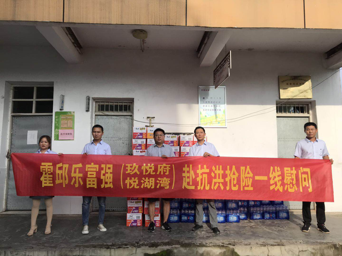 樂富強地產霍邱公司踐行社會責任,7月27日,由樂富強地產霍邱公司組織前往慰問,由普建建、唐紹忠同志帶隊,前往霍邱縣新店鎮中學,為受災群眾送去了礦泉水、方便面等慰問品,深入了解他們的安置及生產生活情況,鼓勵他們牢固樹立對生活信心以及勇氣,為他們送去企業的關懷,以實際行動為防汛搶險工作貢獻企業應盡的責任與力量。